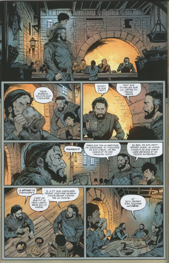 Les 136 pages de ce premier tome permettent d’introduire l’univers et de narrer toute l’enfance de Fitz, jusqu’à sa prise de conscience des intrigues et manigances de la cour et du destin qu’on lui réserve. Pour ceux qui connaissent déjà l’histoire écrite par Robin Hobb, il constitue une excellente manière de se replonger dans son univers et pour les autres c’est là un moyen tout à fait fidèle à l’œuvre originale de s’y essayer.