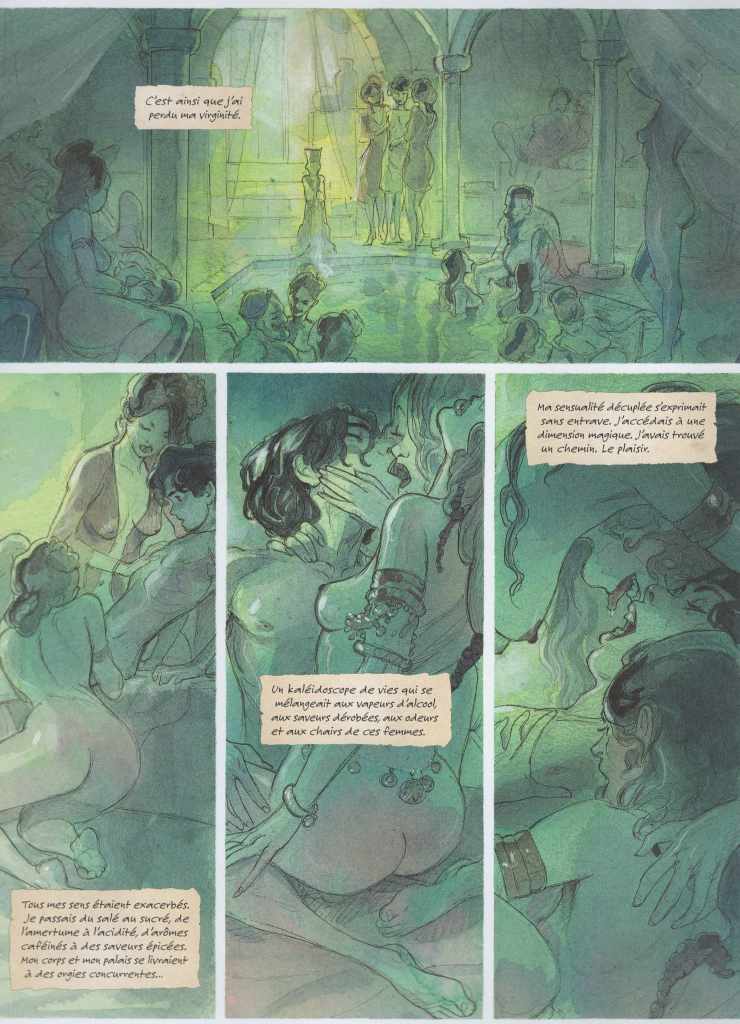Il y a aussi les nombreuses expériences sensitives et sexuelles que mène Adrian tout au long de sa vie pour tenter de retrouver l’extase ou de pallier son besoin affectif : drogue, combat, automutilation, accumulation compulsive de livres… et bien sûr le sexe. Adrian développe également un rapport particulier avec sa mère (et plus tard avec son souvenir) entre crainte, culpabilité, amertume et désir, le tout donnant lieu à un syndrome d’Œdipe qui trouve son apogée au deux tiers de la bande dessinée.
