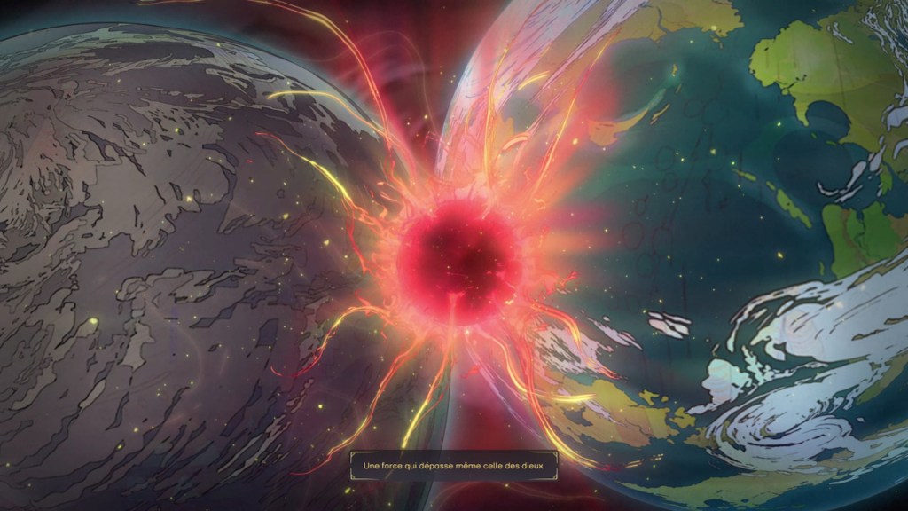 Si en jeu la lisibilité est de mise (ce qui n’empêche pas les environnements d’être somptueux), on profite particulièrement de la qualité graphique du titre lors de ses séquences de narration – qui proposent des successions d’illustrations variées et léchées – ou dans les visuels des cartes utilisées pour les combats, car, oui, Songs of Silence est aussi un jeu de deck building.