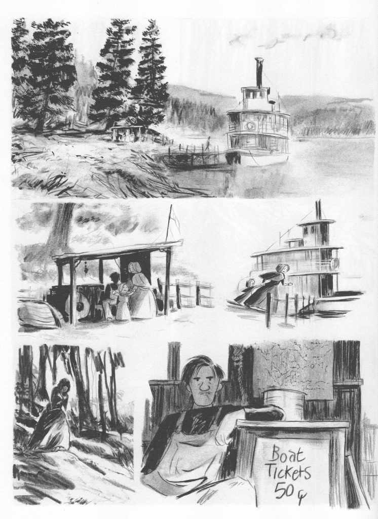 Là où le roman de Gil Adamson échouait parfois à ne pas tomber dans le larmoyant, cette B.D. se montre beaucoup plus fine dans la mise en place de son intrigue et la découverte de son personnage principal. Il en résulte que, si les sentiments du lecteur sont d’abord mitigés au sujet de l’héroïne, il referme sa dernière page bouleversé et heureux, conscient d’avoir mûri aux côtés de Mary. Un sentiment d’accompagnement renforcé par les longues séquences muettes de l’œuvre, qui permettent avant tout de profiter des sublimes paysages, mais aussi de prendre conscience de la solitude du personnage principal. Comme des observateurs impuissants, nous la voyons être déçue, trahie, blessée, apeurée, mais aussi se relever, se cacher, se battre et évoluer.