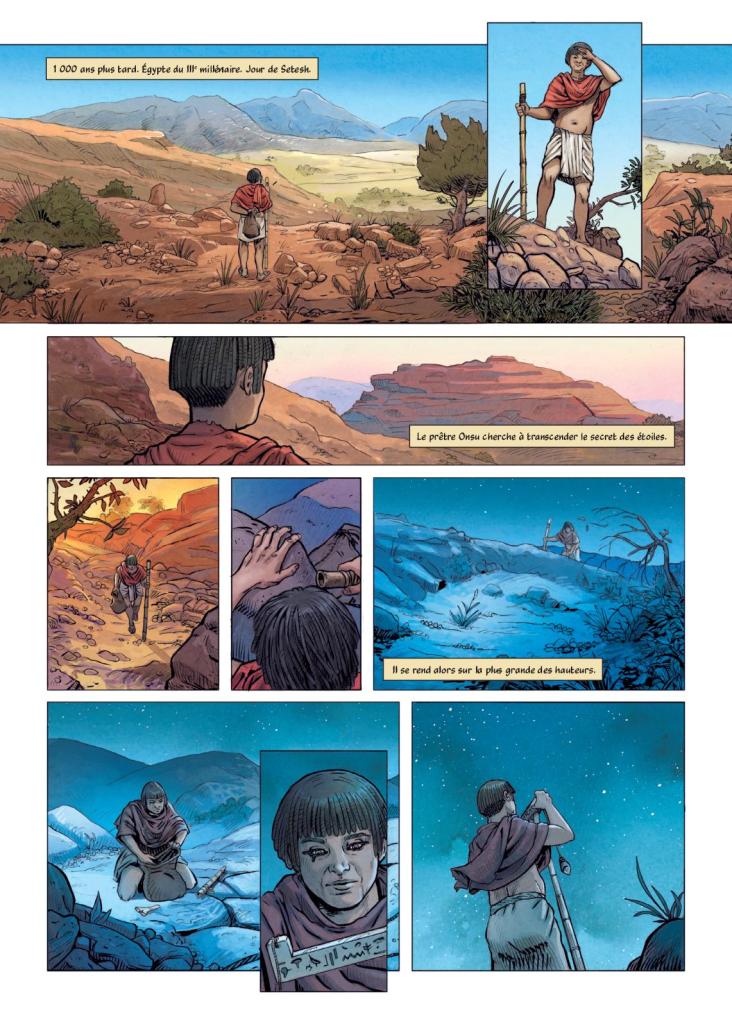 C’est aussi l’ambition tout à fait louable de cet album : montrer que l’Égypte antique n’est pas un bloc immuable, mais un peuple en constante évolution, tant des les domaines scientifiques, technologiques et artistiques, que culturels et religieux. L’autre aspect de la série Civilisations, c’est la place qu’elle donne à l’importance qu’accordaient les peuples anciens à la lecture des astres.
