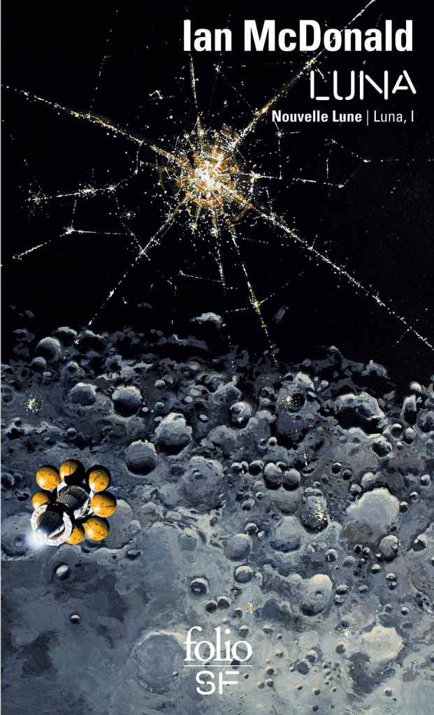 Publié en 2015, Nouvelle Lune (Luna: New Moon) est le premier tome de la trilogie Luna de Ian McDonald. Cet auteur britannique est réputé pour ses récits de science-fiction mêlant intrigues complexes et explorations culturelles. Lauréat de nombreux prix, McDonald est connu pour son approche immersive et son talent à imaginer des futurs aussi crédibles que fascinants. Avec Nouvelle Lune, il nous plonge dans un monde brutal et hypercapitaliste où cinq grandes familles se disputent le contrôle des ressources lunaires. Ce roman, souvent comparé à Game of Thrones dans l’espace, combine les codes du planet opera et de la hard SF pour offrir une fresque politique et sociale palpitante.