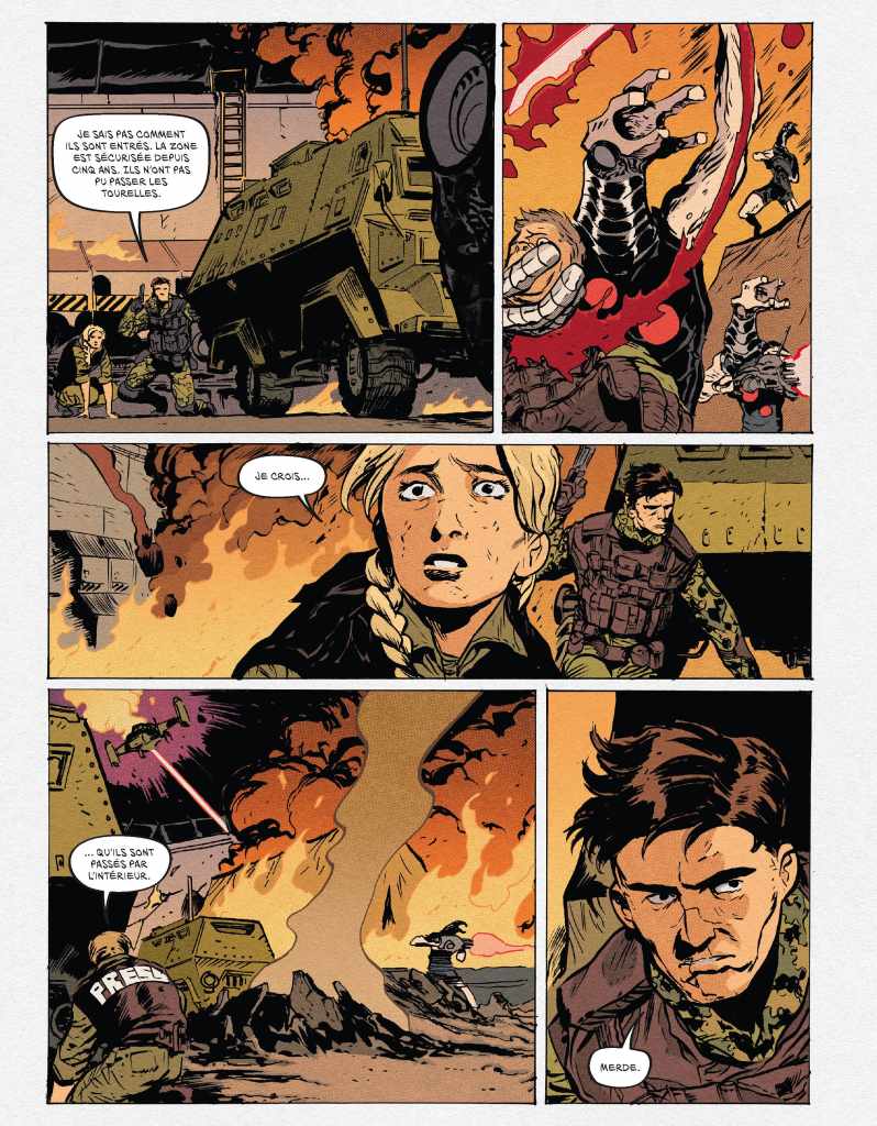Avec Matt Kindt (Revolver, Men of War ou encore Marvel Knights Spider-Man) au scénario et Dan McDaid (Doctor Who magazine, Doom Patrol, Firefly…) au dessin, Si vous lisez ça, je suis déjà morte, promet une lecture explosive… elle est en réalité cataclysmique ! Véritable déluge d’action, hommage parodique aux films bourrins des années 1990, débauche de moments gores dans une ambiance qui tutoie parfois du Lovecraft, ce one-shot de science-fiction ne laisse pas une minute de répit à ses lecteurs !