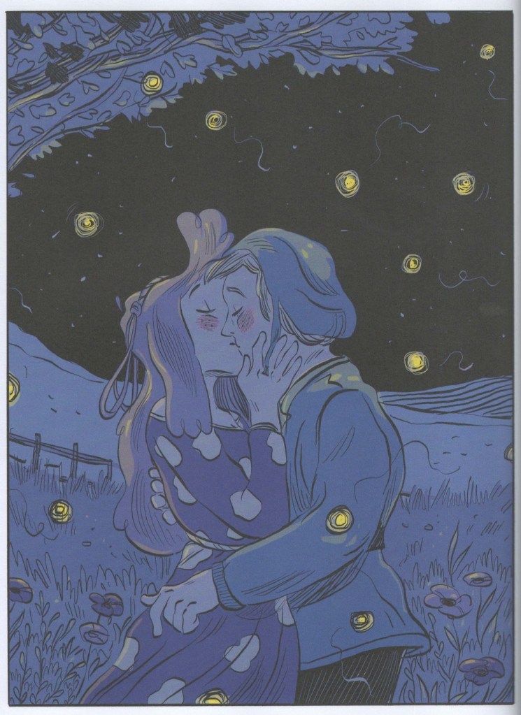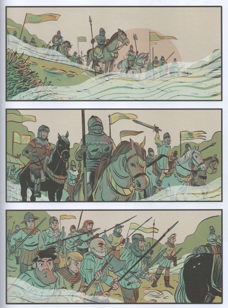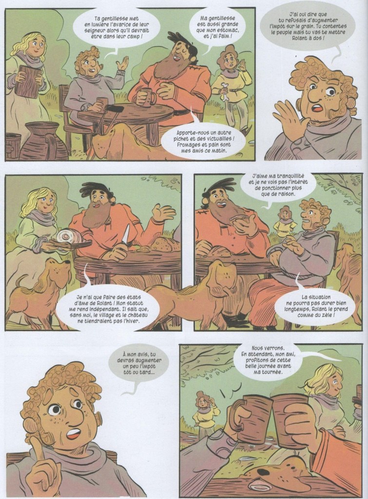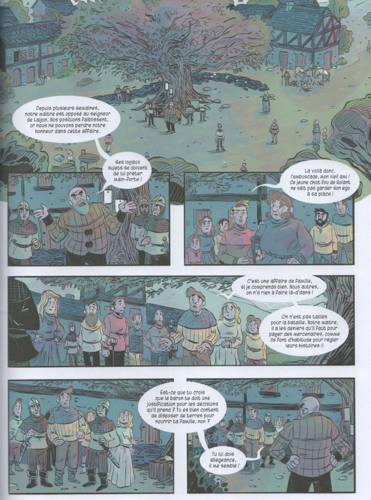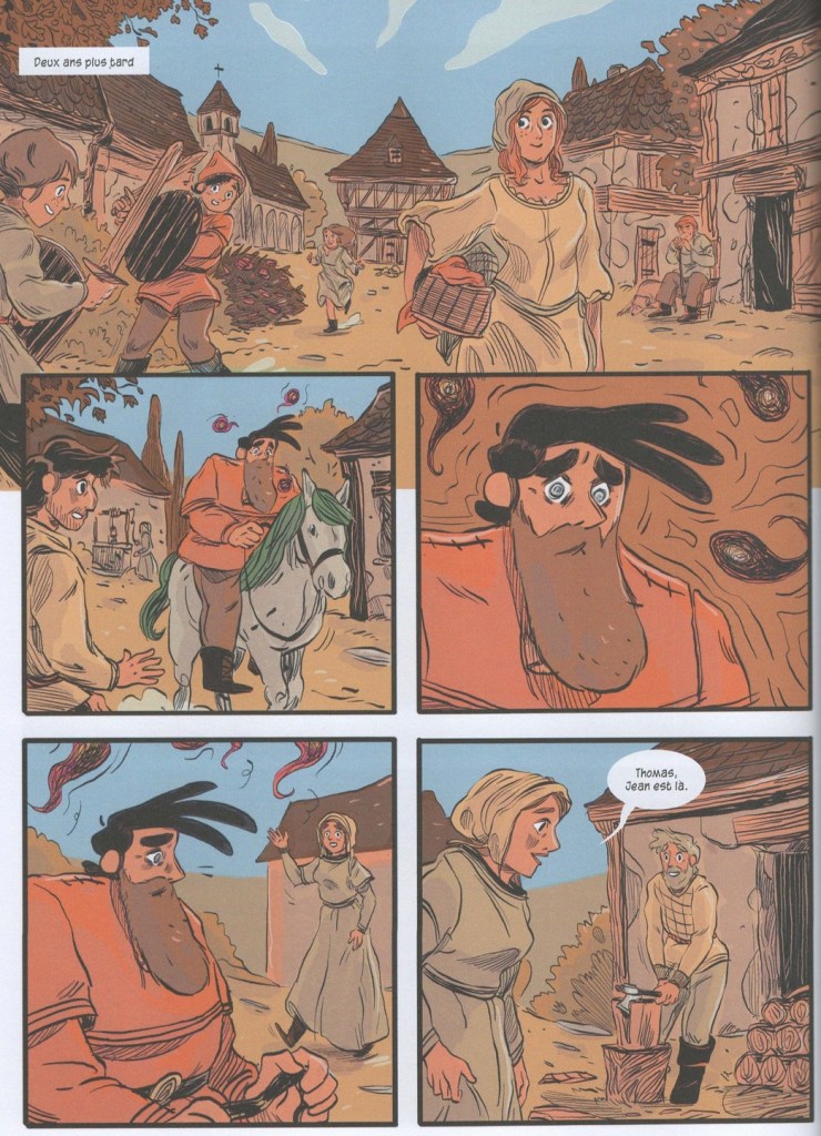 L’artiste sublime un scénario extrêmement touchant, qui nous entraîne dans une campagne moyenâgeuse loin des clichés propagés par le cinéma et la littérature : les gens sont propres, les vêtements colorés, la vie n’y est pas du tout misérable. C’est notamment dû aux recherches menées par la scénariste et expliquées en fin d’ouvrage. Le récit est tantôt bienveillant, tantôt cruel avec ses personnages, mais toujours très authentique, grâce à la grande justesse des sentiments qu’il exprime. Son message de résilience, de reconstruction et d’espoir sonne vrai et l’on s’attache autant que son héros à l’adorable Pivoine.