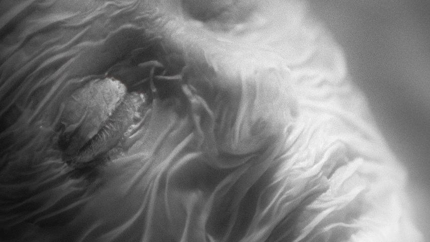 Else agrippe la rétine de son spectateur avec sa proposition graphique élaborée rappelant le travail de Yorgos Lanthimos (Pauvres Créatures, en particulier) ou de Terry Gilliam (Brazil à l’évidence) et n’hésite pas à offrir de multiples pistes d’interprétations quant à cette anomalie qui fait de fusionner les corps dans un chaos visuel toujours plus abouti. D’abord discrète, cette menace englobe vite les corps et les esprits, avec des effets pratiques réussis rappelant le chaos du monde dévasté de Mad God, tout en lorgnant sur le cinéma organique de Bertrand Mandico. Des incrustations régulières de microscopiques fragments absorbant la réalité infusent une tension supplémentaire, qui donne un cachet unique à la direction artistique de Else.