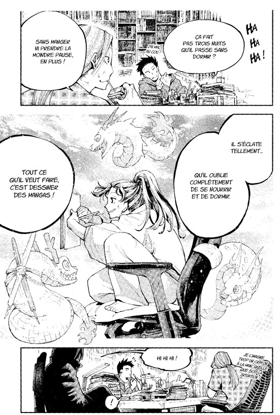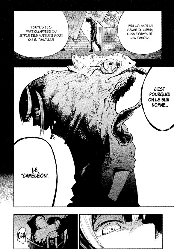 Certes, Dragon & Caméléon n’est pas la première œuvre à se plonger dans les coulisses de la création de mangas, mais elle le fait avec une originalité et une touche de fantastique plutôt plaisante. En mettant en scène l’affrontement entre deux artistes aux tempéraments diamétralement opposés, la série incarne le rêve de tout créateur : devenir le héros de sa création. Une mise en abyme qui permettra également à ceux qui aspirent à devenir mangakas de découvrir l’envers du décor de ce monde très fermé, avec force de conseils et d’infos, qui couvrent aussi bien les techniques de dessin que l’organisation hiérarchique d’une maison d’édition japonaise.