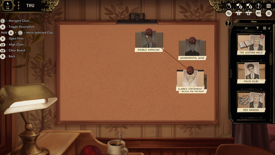 Best Served Cold se divise en deux parties : l’une durant laquelle vous préparez et servez des verres tout en discutant avec vos clients, l’autre où, une fois rentré chez vous, vous assemblez les différentes informations que vous avez collectées précédemment pour progresser dans votre enquête. La plupart du temps, ce sont les consommateurs qui vous donneront les infos, soit en les faisant boire suffisamment pour qu’ils se livrent un peu trop, soit en devenant leur ami. Il est également possible de leur montrer des éléments déjà découverts pour observer leur réaction et affiner vos déductions.