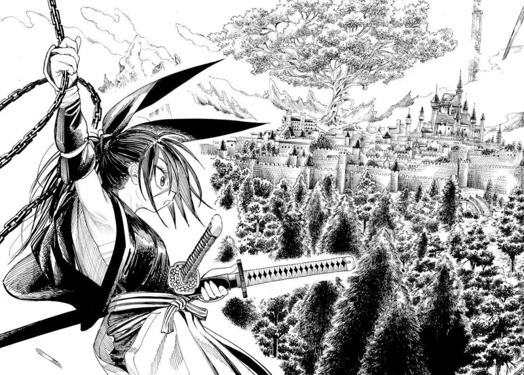 Isekai Samurai a de nombreuses qualités et l’une des plus évidentes est bel et bien son dessin. Fougueux, délicatement hachuré et fleurant bon les années 1990-2000 (le chara-design de Ginko rappellera immanquablement Kenshin le vagabond), le trait de Keigo Saito se révèle très technique et empli d’une beauté poétique bien rare dans un genre gavé de modèles graphiques tous similaires. S’ajoute à cela que ce dessin est au service d’un univers tout aussi dense, offrant un lore intriguant, qui n’attend que de se dévoiler. Trois tomes suffisent à saisir la densité du monde fantasy qui nous est proposé, ses enjeux ainsi que ses règles. Voir Ginko se frotter constamment à des barrières sociales et culturelles qu’elle n’a jamais côtoyées rend le tout très savoureux. L’humour, plutôt barré par moments, sait se jouer avec brio de certains codes du genre, tout en ménageant une tension mélancolique, due à la personnalité complexe de Ginko, qui désire vivre selon la voie du sabre envers et contre tout.