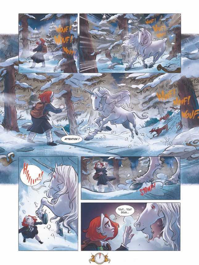 | Loin d’être une princesse Sarah des temps modernes, Romy va puiser dans des ressources insoupçonnées pour survivre à Fatidi et parvenir à trouver la confiance en elle qui lui manquait pour tenir tête à celles et ceux qui la persécutent. En plus de proposer une histoire qui démontre une vraie compréhension de l’adolescence, sans complaisance ni condescendance, Les Licorniers modernise la figure de la licorne, loin des clichés enfantins et sexistes, pour en faire un symbole de rébellion et de force. Une très belle découverte, que l’on doit aux éditions Glénat et dont le tome 2 débarque à la fin du mois d’août. |