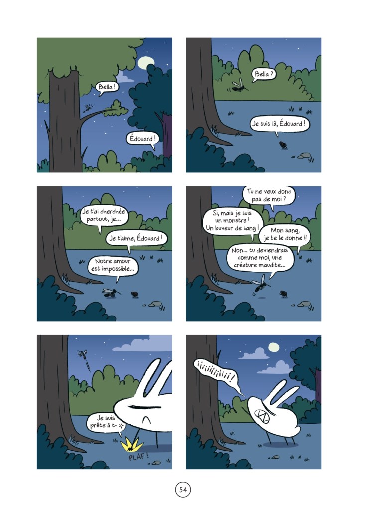 Chez les Mille Mondes, on parle souvent de livres sérieux, d’histoires de famille tragiques, de fictions postapocalyptiques, d’amours impossibles ou d’aventures mortelles… Pourtant, n’allez pas croire que nous sommes incapables d’apprécier une belle tranche d’humour absurde ou quelques fables potaches si on nous en donne l’opportunité ! Voici donc l’occasion de (re)poser un peu notre cerveau avec la lecture du Lapin des Baskerville, une série de petites historiettes en bande dessinée joyeusement loufoques !