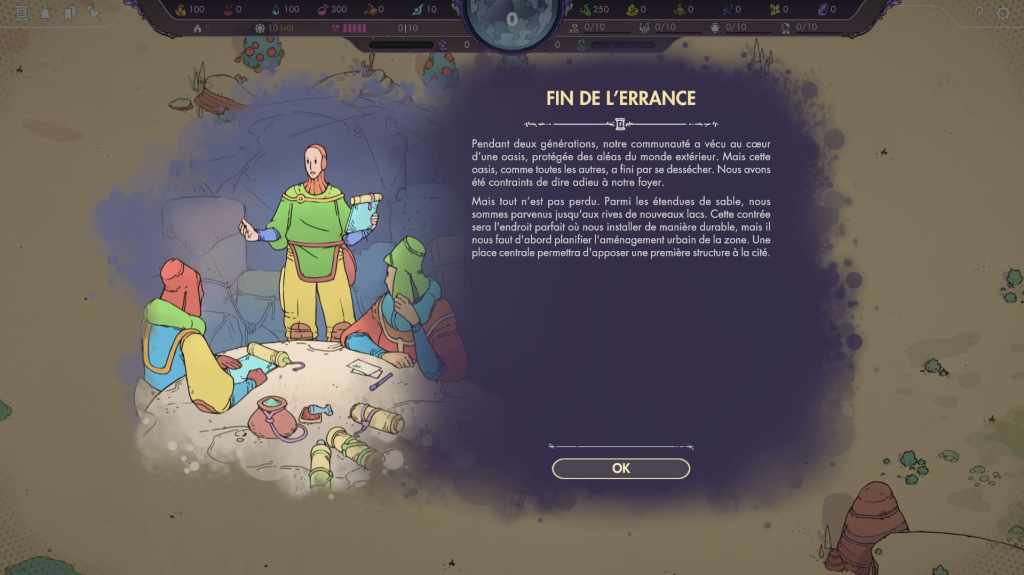 Synergy est resté en early access plusieurs années avant de sortir en version complète le 16 avril 2025. Le jeu nous emmène sur une planète inconnue et désertique, à mi-chemin entre Arrakis et Tatooine, sur laquelle la vie est parvenue à émerger malgré des conditions difficiles. Néanmoins, le peuple dont nous avons la charge ère depuis longtemps, chassé de ses terres natales par la sécheresse et se retrouve amputé d’une partie de son histoire et de ses connaissances. Arrivés aux abords d’une des rares oasis que compte la planète, voilà les survivants prêts à rebâtir une cité, mais pour cela il va leur falloir comprendre leur environnement et s’y adapter, afin de ne pas se retrouver sans ressources au bout de quelques cycles.