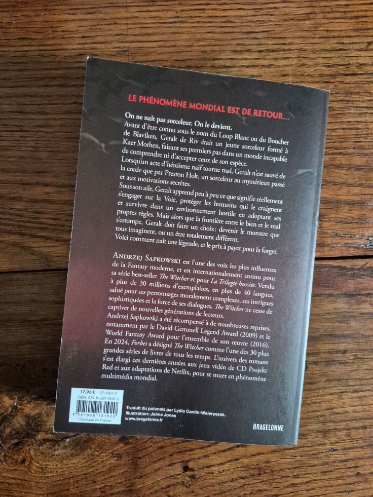 Cet exemplaire a été gracieusement fourni par Bragelonne, foyer des sorceleurs depuis le tout début de l’œuvre d’Andrzej Sapkowski. Doit-on le préciser ? Un grand merci à eux.
