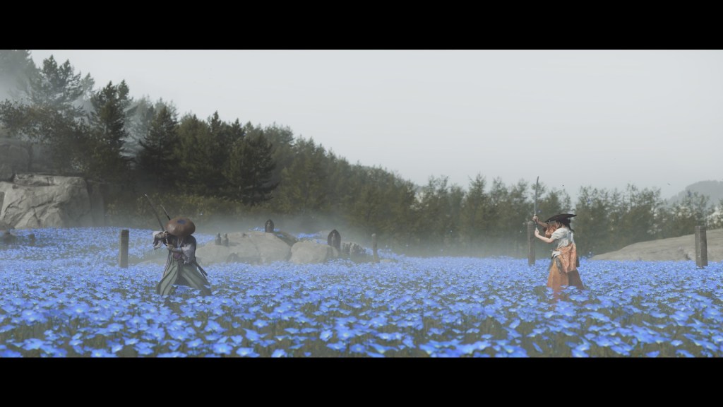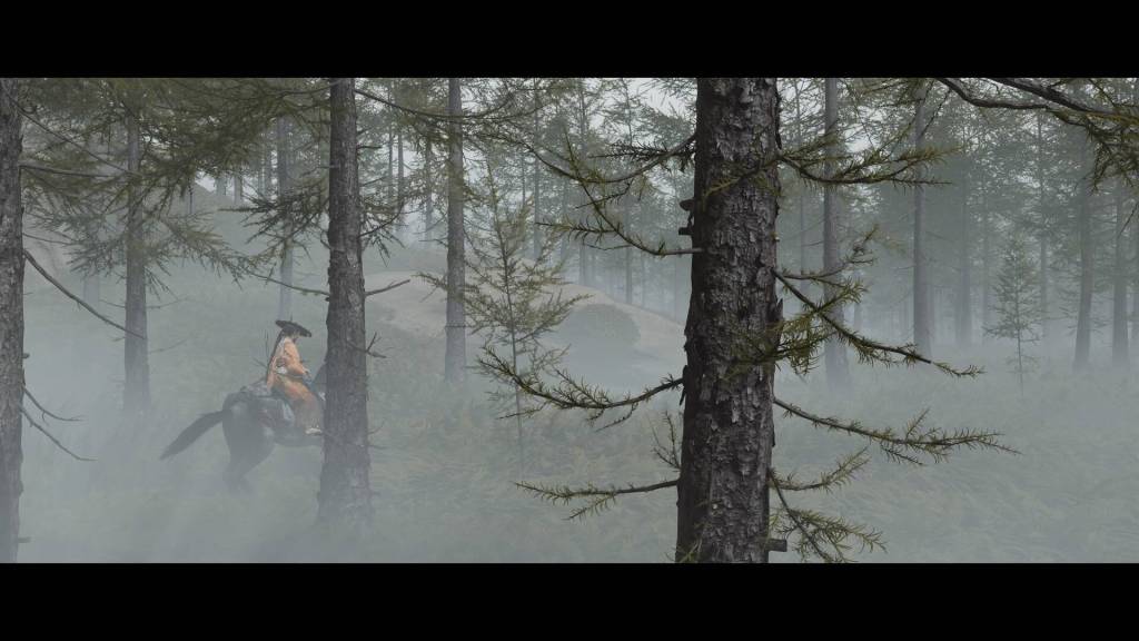 Ces compagnons sont ceux qui vont effriter peu à peu la résolution d’Atsu, en tentant de lui faire comprendre que la revanche n’est pas une fin en soi. Et l’héroïne commence à se demander si elle ne perd pas en quête vengeresse du temps qu’elle pourrait passer à construire des liens et vivre une vie heureuse, tout en refusant d’accepter d’avoir déjà tant sacrifié si ce n’est pas pour aller jusque au bout. Pourtant, plus Atsu s’entête et plus l’on sent venir un drame digne du cinéma de Kurosawa à partir duquel le jeu propose un mode visuel à part entière. D’ailleurs, si Ghost of Yōtei s’inspire encore plus largement du western spaghetti à la japonaise des années 1970 que son prédecesseur, c’est bien le tragique de Masaki Kobayashi que l’on sent poindre derrière la souffrance de son héroïne. La touche de fantastique évoque, quant à elle, le film Kuroneko, de Kaneto Shindō, une autre histoire de femmes vengeresses, avec une mélancolie que n’aurait pas renié un réalisateur tel que Kenji Mizoguchi. C’est peut-être d’ailleurs pour repousser cette tragédie en devenir, ce final dont l’héroïne laisse entendre qu’il signera sa fin, que celle-ci se laisse parfois distraire le temps de quelques quêtes annexes, dont la violence est malgré tout rarement absente, comme pour appuyer sa vision d’un monde cruel dans lequel il vaut mieux s’aventurer armé.