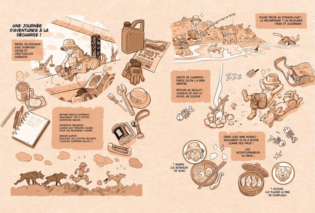 | Gardiens de fer propose un album jeunesse magnifique, entre Transformers et Sand Land, bourré de bonus, parfaitement adapté à son public. On a hâte de découvrir la suite des aventures de Soni et Dumpling, en espérant que les personnages secondaires aient l’occasion d’y épaissir leur personnalité et le scénario de nous surprendre. |
