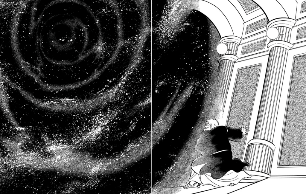 Lire Une infinité de jours et de nuits invite au voyage physique des personnages, mais également au voyage de l’esprit du lecteur, tout cela sans s’arrêter, d’une façon tout à fait épuisante. Rire en trouvant un physique déplaisant à Poséidon, s’étonner en découvrant un Jésus espiègle, narquois et malicieux, s’émouvoir en plongeant dans les visions d’Ashura, s’arracher les cheveux devant la complexité d’une telle intrigue et de tels allers-retours dans l’espace-temps distordu… Se retrouver devant ce manga n’est pas simplement admirer une œuvre de Moto Hagio dont on aura connu des histoires plus simples, mais c’est partir en voyage dans le roman de Ryû Mitsuse. Plonger dans ce titre fait se retrouver le lecteur face à une mine d’informations en tout genre, parfois inconnues des occidentaux, pour lesquelles il y a un manque clair d’explications de la part de l’éditeur français, qui aurait pu introduire, à la fin du volume, un moyen de mieux comprendre les noms et lieux communs du christianisme ou du bouddhisme dont il est question au cours de l’histoire.