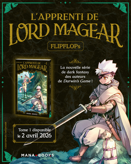 En avril prochain, les éditions Mana Books accueillent dans leur catalogue la nouvelle série de FLIPFLOPs (Darwin’s Game), un titre de dark fantasy d’une richesse folle, porté par un duo aussi attachant qu’impitoyable : L’Apprenti de Lord Magear.