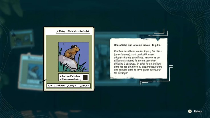 Puis, au fur et à mesure, la découverte du scénario passe par d’autres moyens. Une note écrite laissée là, un panneau d’information ici, la rencontre avec un animal, une cavité dans la paroi rocheuse dévoilant les restes d’un village troglodyte, une fresque murale, un son résonnant au cœur de la montagne, un alpiniste que l’on croise, ou que l’on retrouve parfois mort.