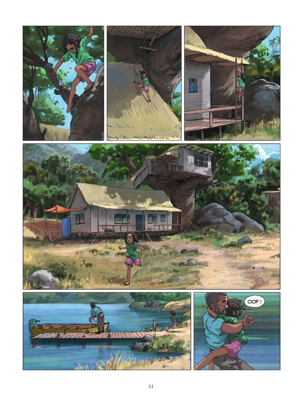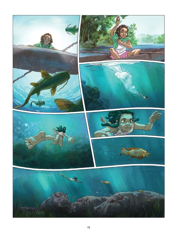 Si le récit ne prend pas de risque d’un point de vue politique, il porte un vrai message écologique. L’album à d’ailleurs été en partie conçu par le collectif Blue Forest, qui travaille à restaurer la mangrove dans les régions fluviales d’Afrique, au Moyen-Orient et en Asie. Il faut dire que le style des deux artistes sublime la forêt, les berges et les nombreux animaux qui peuplent Kariba. En dessinant leurs décors à part de leurs personnages, ce qui leur donne un joli effet peint, Daniel et James Clarke renforcent cette sensation que l’humain est minuscule face à la puissance de la nature.